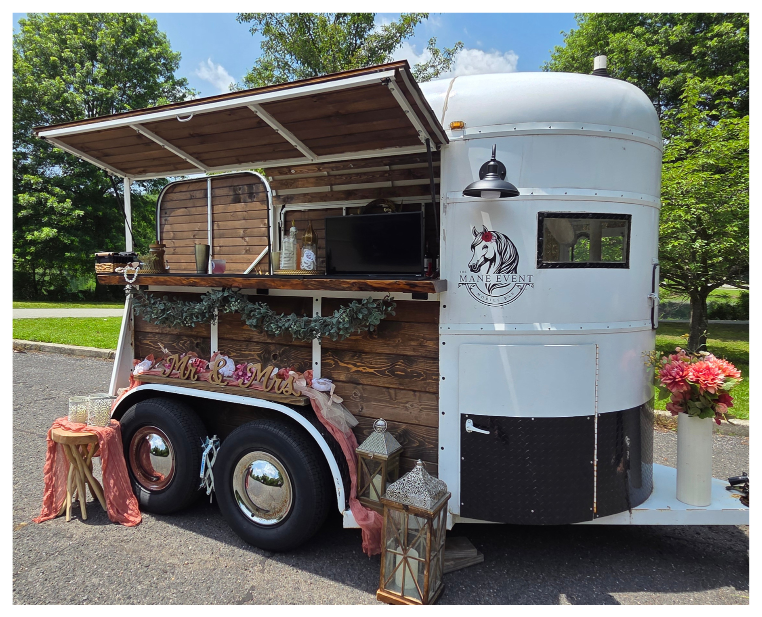 Our goal is to make every event as special as the next. From the early planning stages to the final pour, we’re here to help create lasting memories that your guests will rave about. Our mobile bar is a fully remodeled 1994 horse trailer, beautifully restored with wood accents and customizable décor to match any occasion.